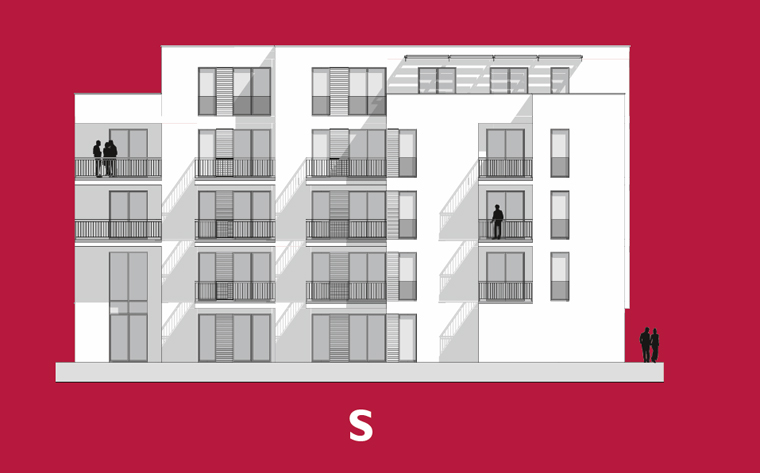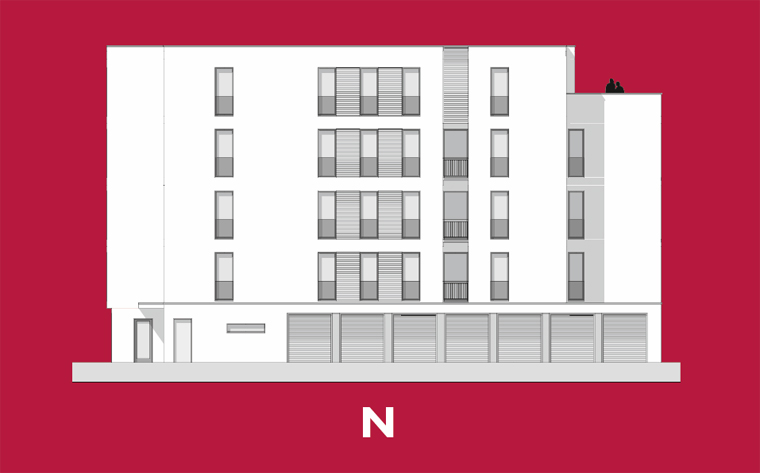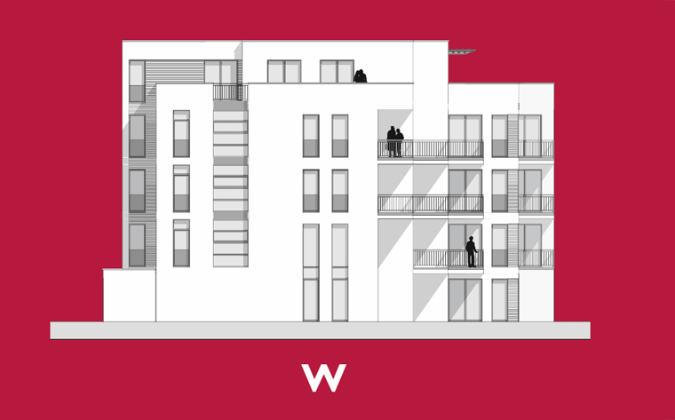 Neubau von 14 Wohnungen mit 11 PKW-Einstellplätzen im Erdgeschoss. Jeder Wohnung wird ein Abstellraum auf der jeweiligen Ebene zugeteilt.